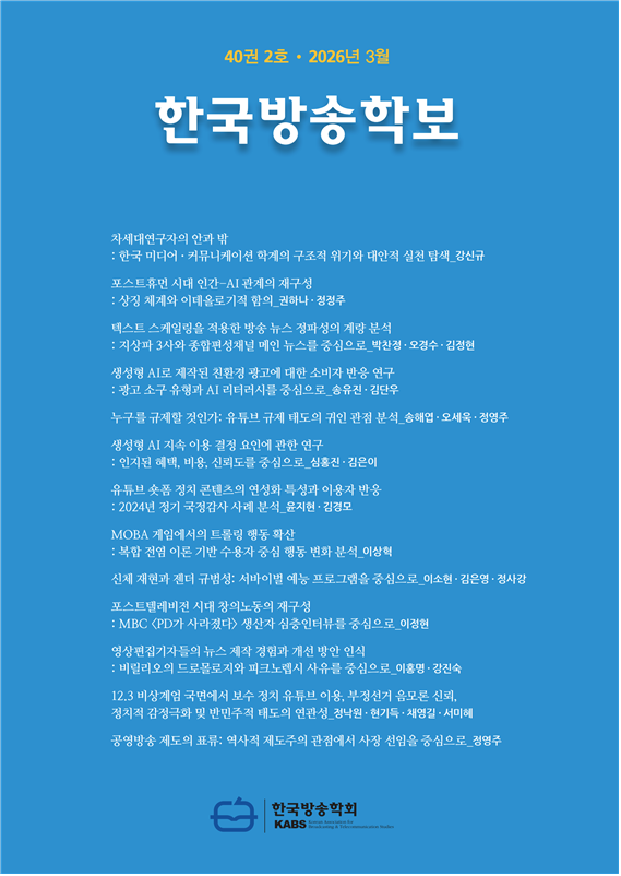 * 붙임. 한국방송학보 제40권 2호 국문초록. 끝.