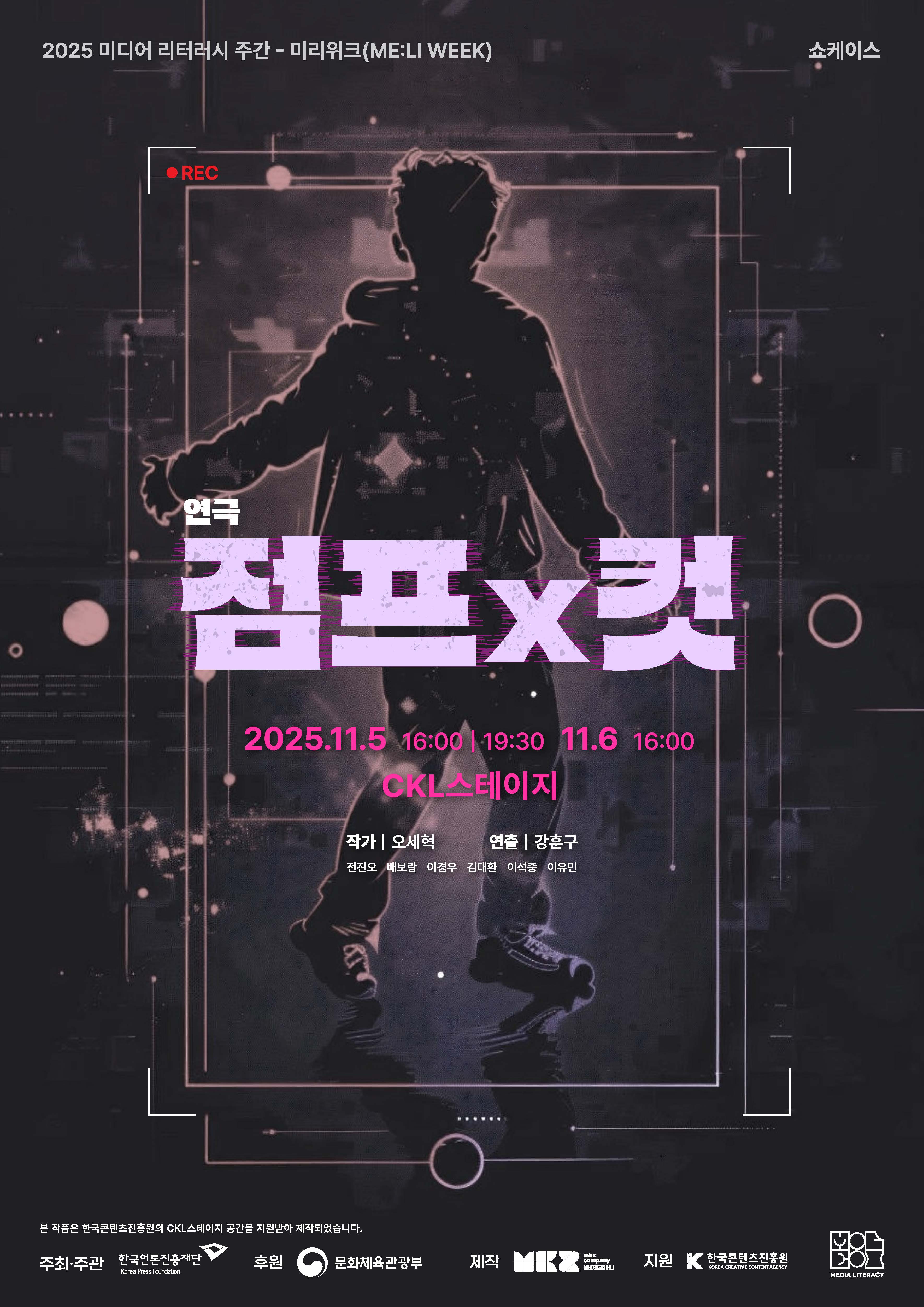 한국언론진흥재단은 변화하는 미디어 환경 속에서‘정보를 비판적으로 이해하고 해석하며 책임 있게 활용하는 능력, 미디어 리터러시’를 주제로 한 브랜드 콘텐츠 연극 〈점프x컷〉을 새롭게 선보입니다.