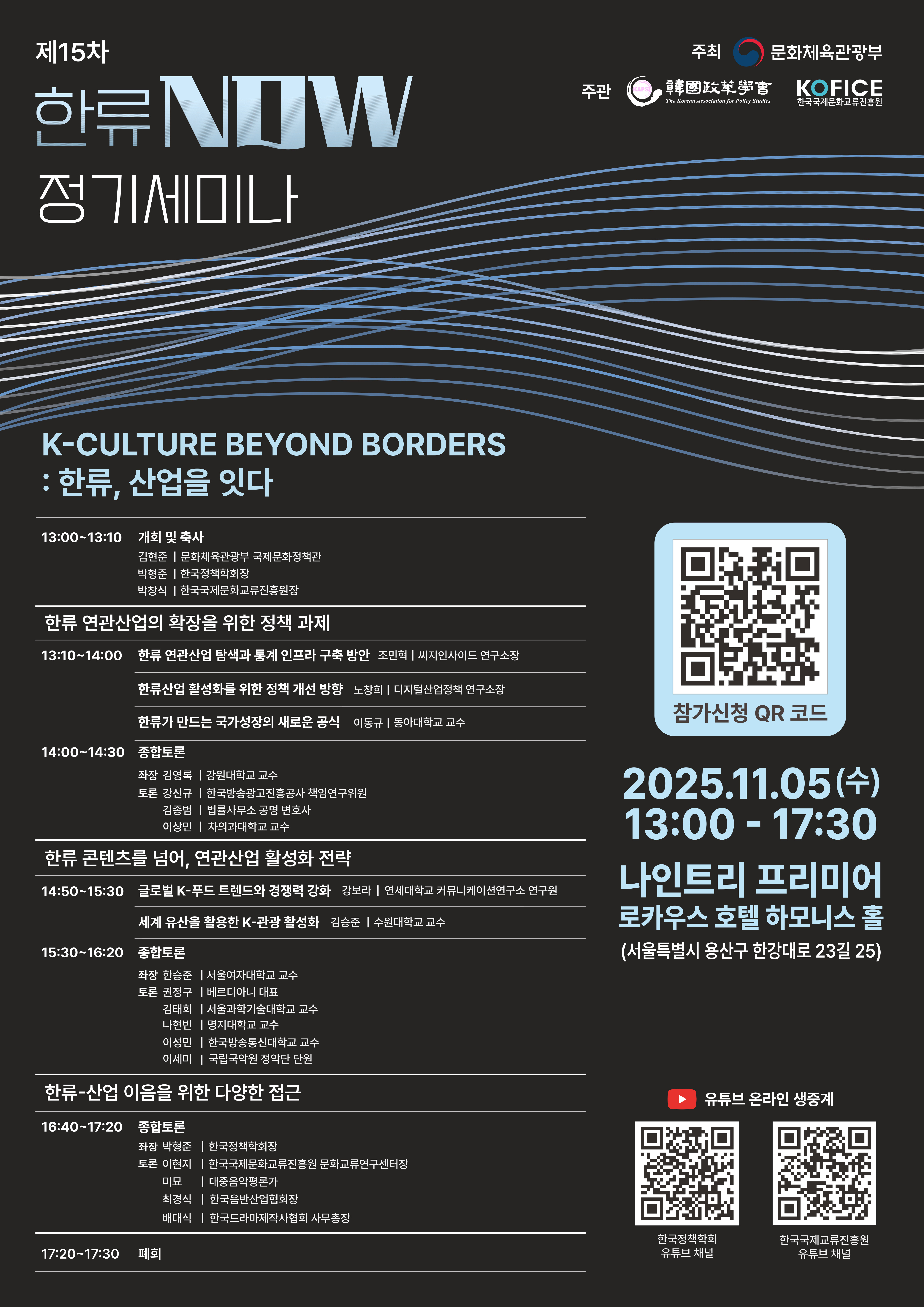 [ 제15차 한류나우 정기세미나 'K-CULTURE BEYOND BORDERS: 한류, 산업을 잇다' ]