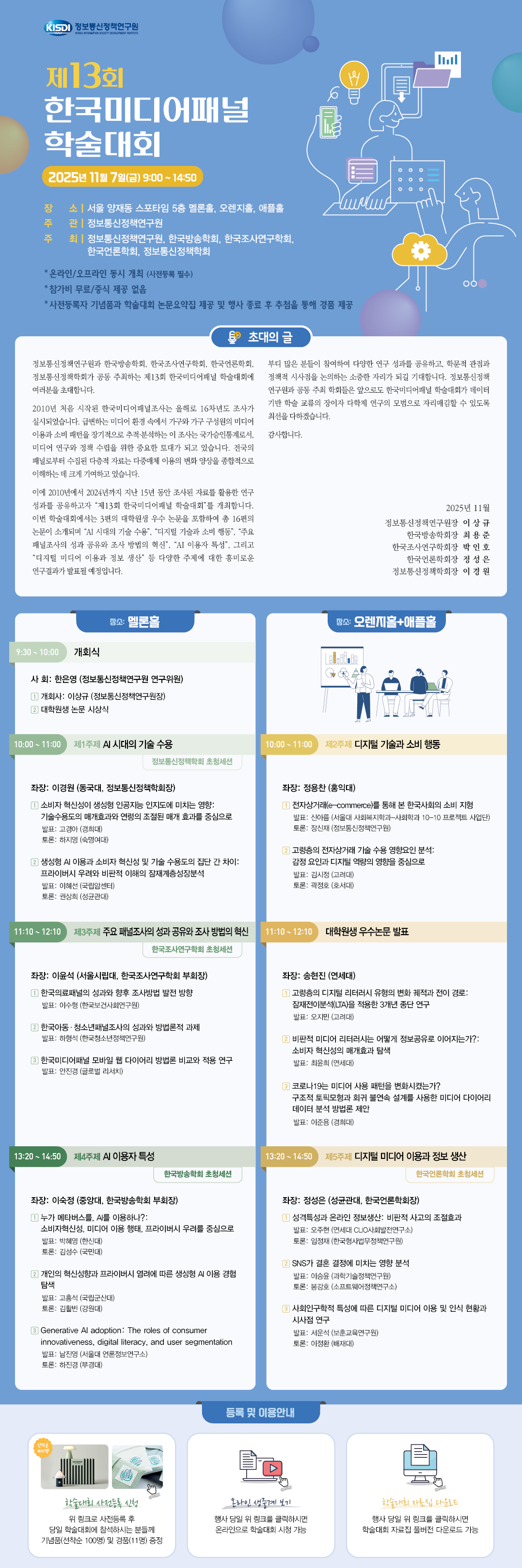 - 주최: 정보통신정책연구원, 한국방송학회, 한국조사연구학회, 한국언론학회, 정보통신정책학회