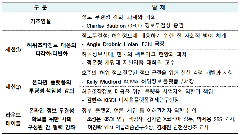 - 주제: 허위조작정보 대응 및 정보무결성 강화 : 이해관계자의 역할