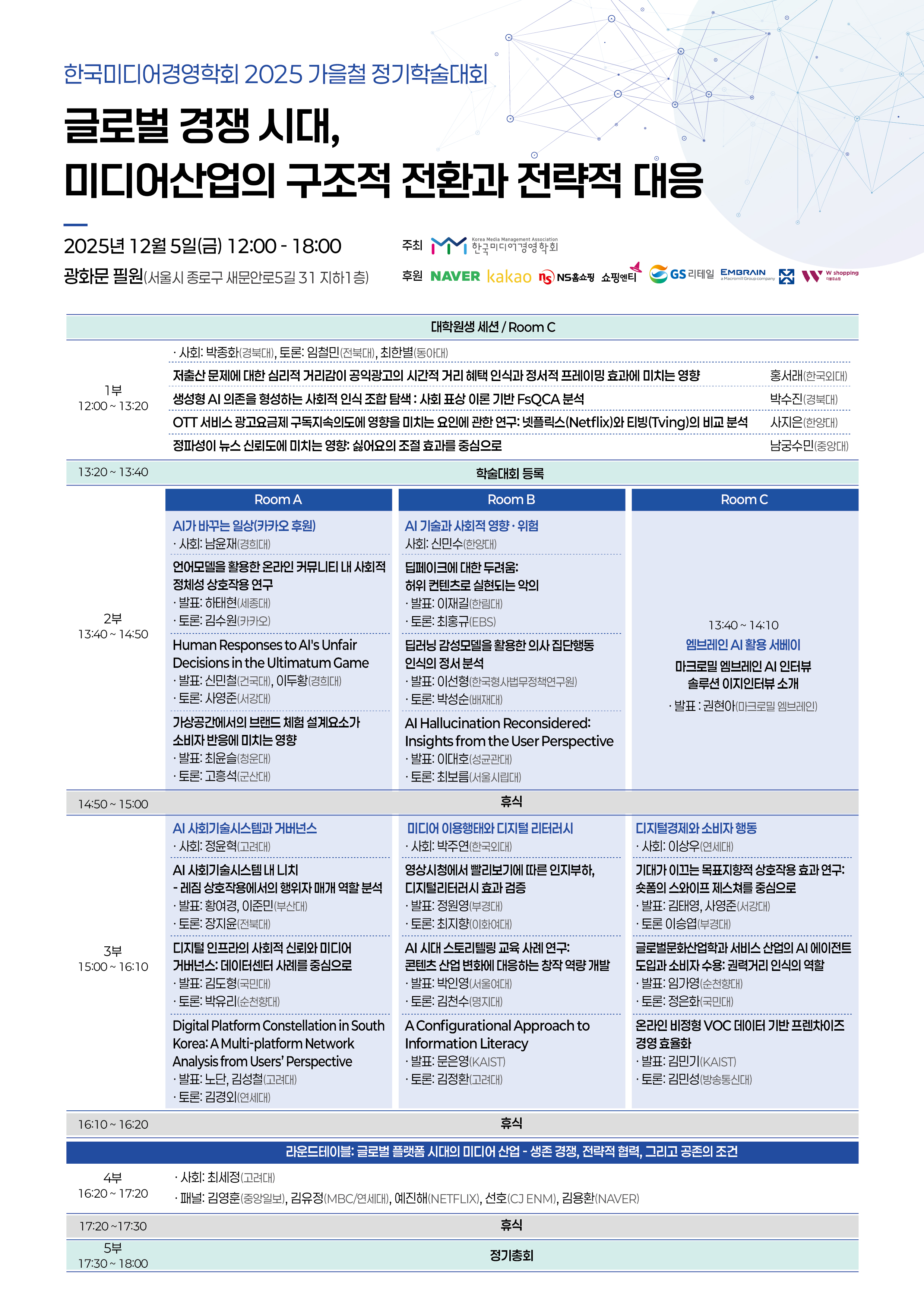 □ 한국미디어경영학회 2025 가을철 정기학술대회 조직위원회