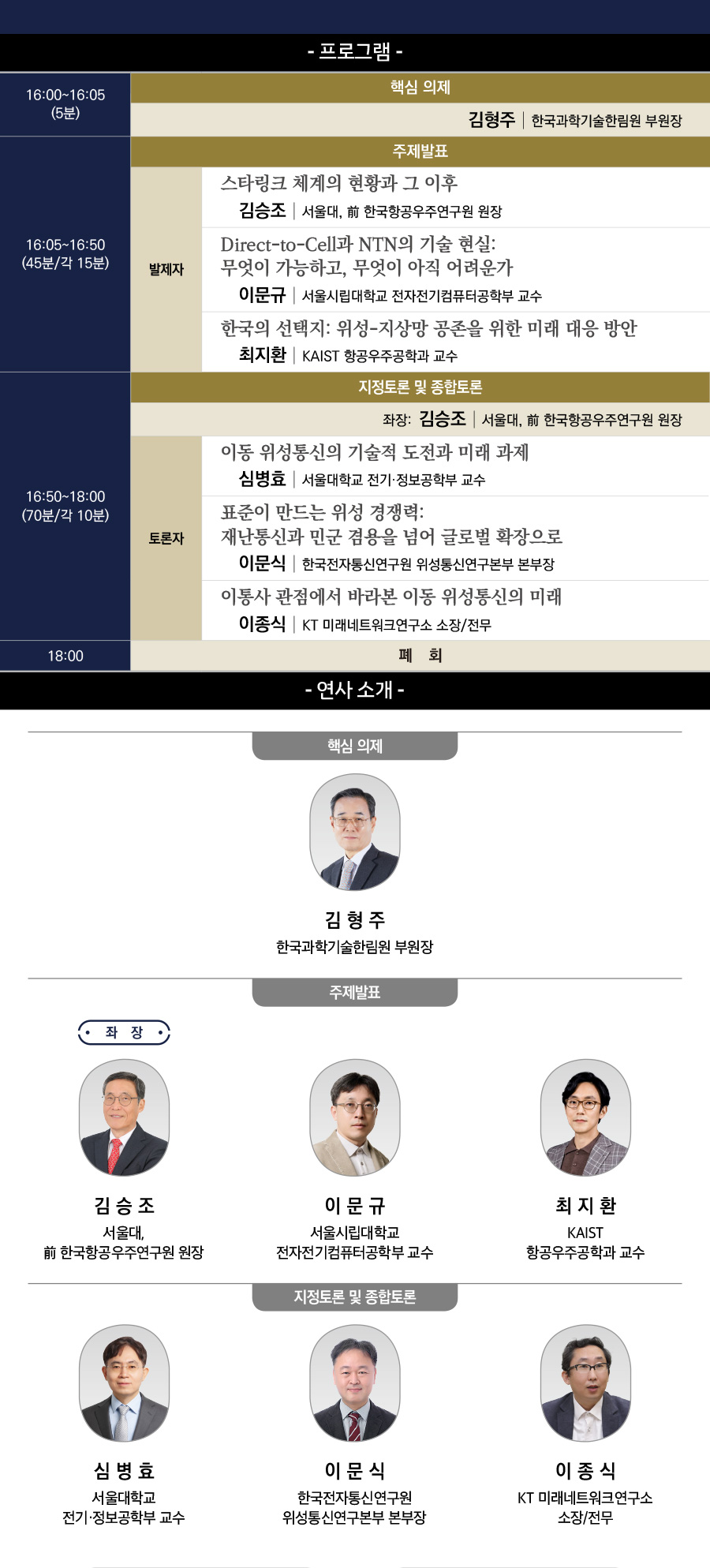 □ 행사명: 스타링크 시대의 이동통신: 위성-지상망 공존 시대를 향한 한국의 대응 전략