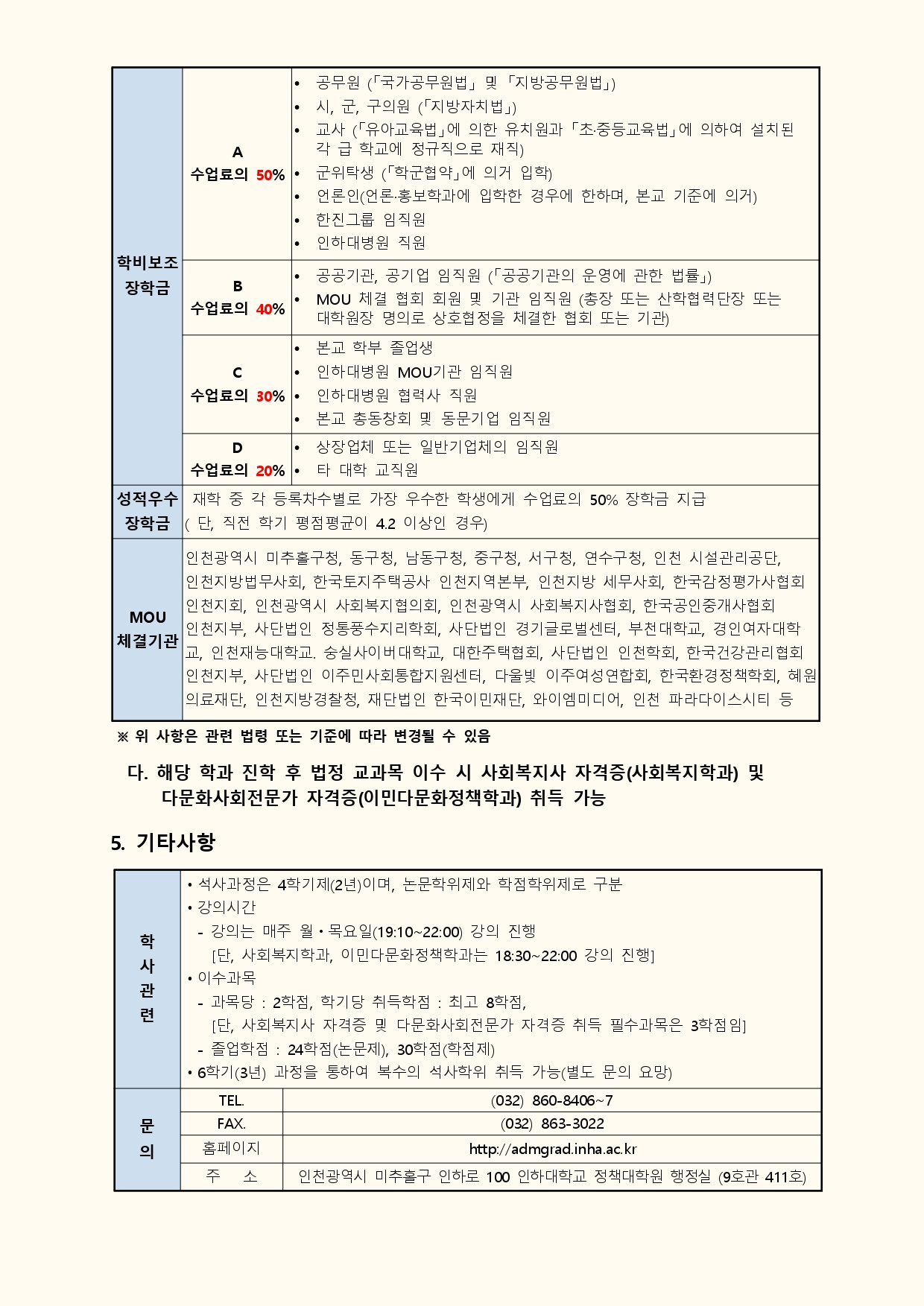 - 입학문의 : 인하대학교 정책대학원 행정실