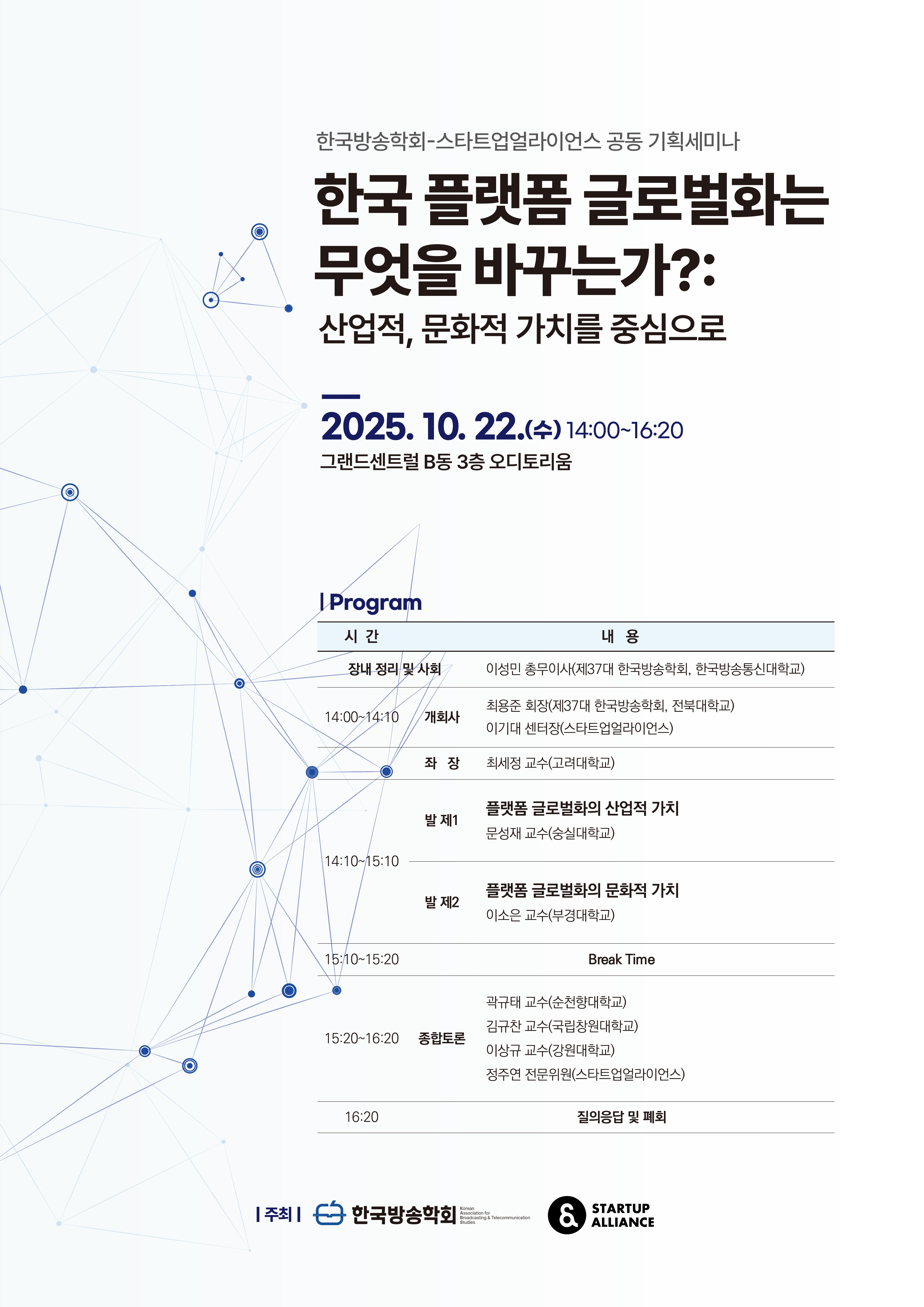 - 주최: 한국방송학회, 스타트업얼라이언스
